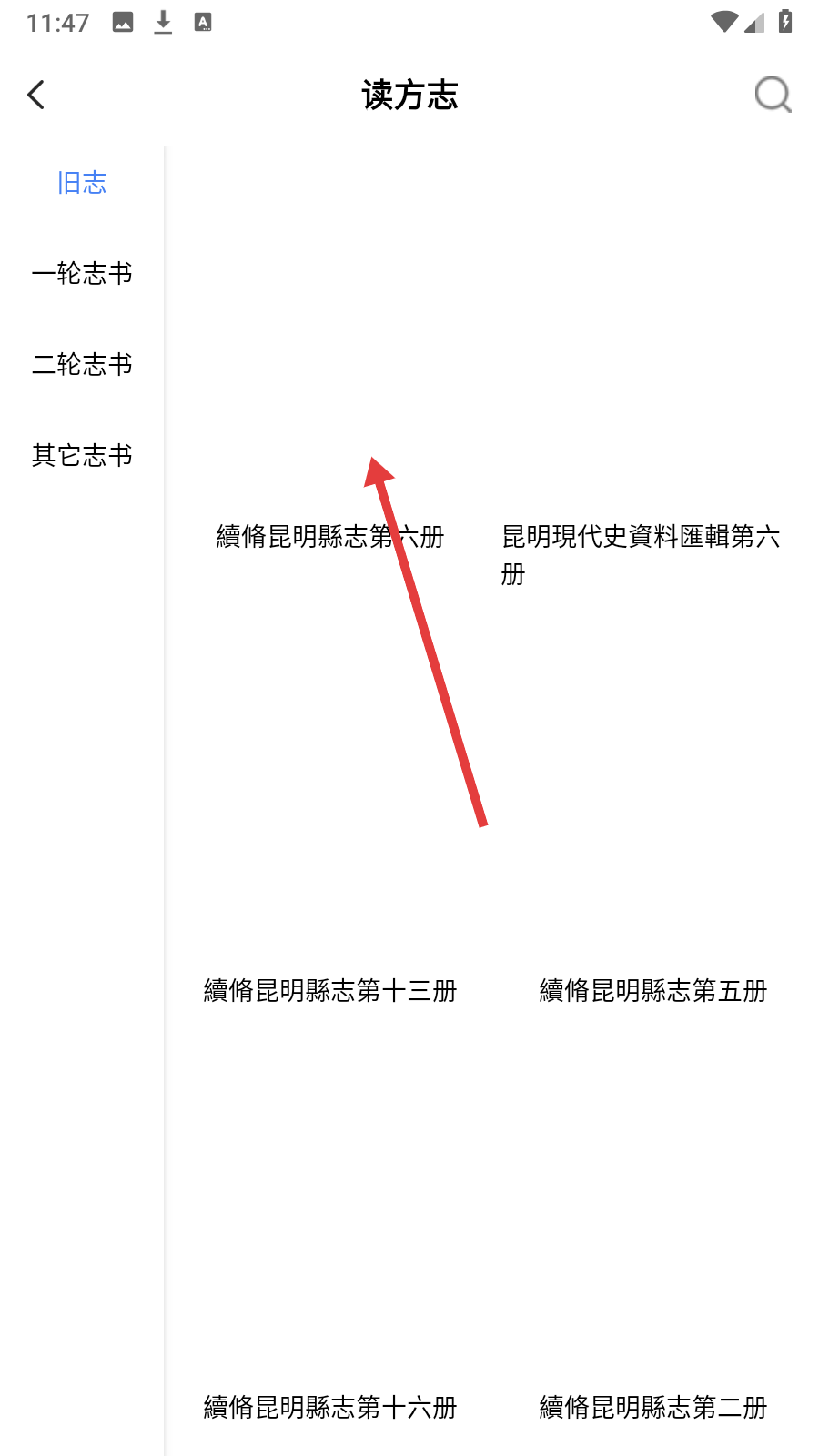 2、读方志页选【旧志】,查看相关志书列表找书籍。