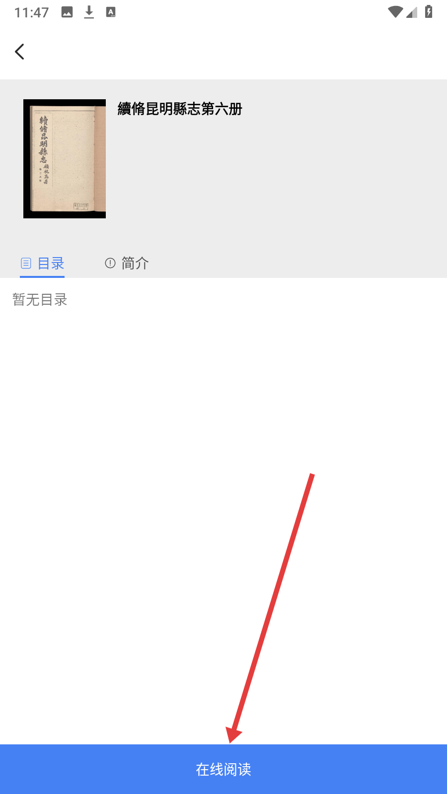 3、志书列表点选书籍,进入详情页点【在线阅读】。