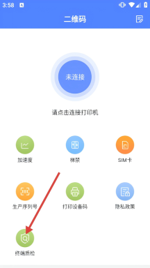 1、从二维码页点击【终端质检】,进入终端质检页。