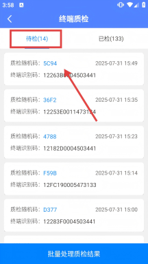 2、在终端质检页,选择待检项,点击进入质检单页。