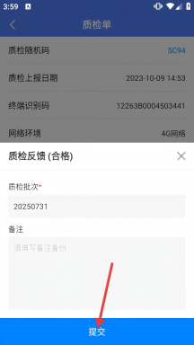 4、在弹窗,填信息后点【提交】,可提交质检结果。