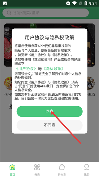1、请先阅读【用户协议】和【隐私政策】,在充分了解个人信息的处理规则后,点击【同意】按钮,即可进入点获的主界面开展后续操作。