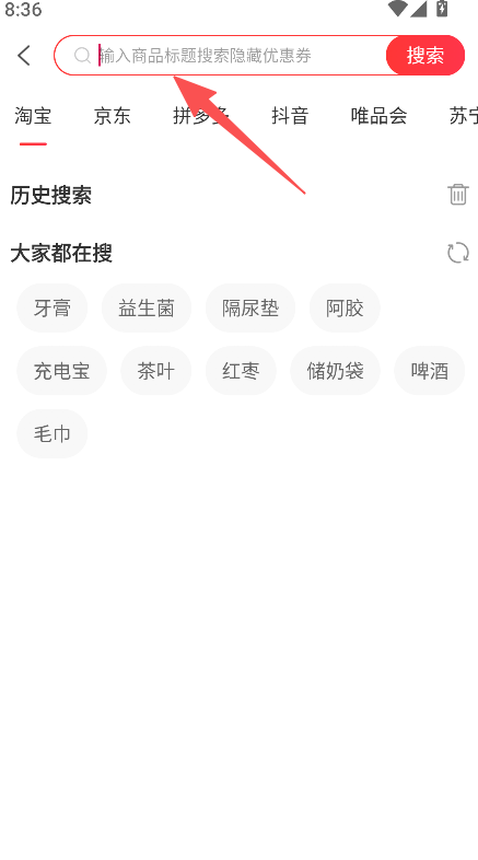 3、支持隐藏优惠券的商品搜索功能,用户只需输入商品标题就能查找,帮助用户领取优惠,实现省钱购物。