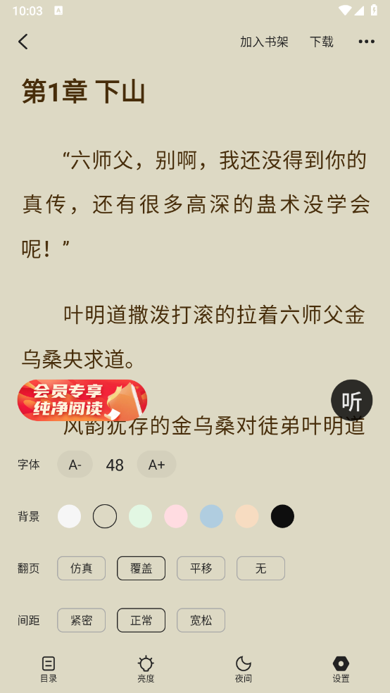 5、点击屏幕中间位置可以对阅读页面进行各种设置。