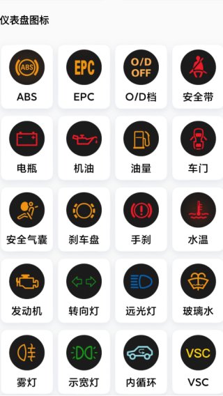 2、还罗列了常见的仪表盘图标,像安全带未系、电瓶亏电,以及用户可能没意识到自己开启了远光灯这类情况;