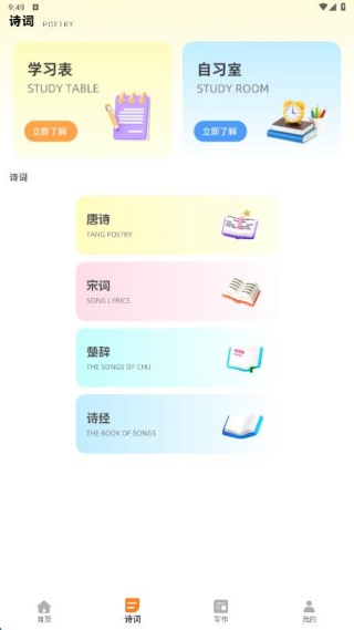 3、自习室功能为用户营造无干扰的学习氛围,助力大家专注于诗词学习,提升效率。