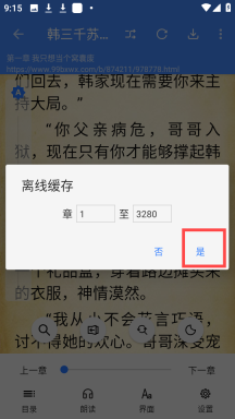3、弹出窗口后,选择需要缓存的章节范围,点击确认按钮就能启动缓存。