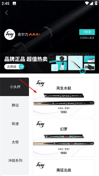 2、在品牌详情页面,选择要购买的球杆,如风生水起,进入球杆详情页面。