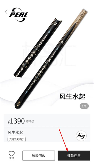 3、在球杆详情页面,点击该款在售按钮,进入商品购买页面。