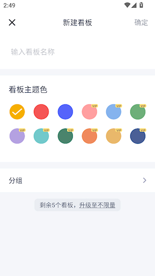 2、输入看板的名称,选择主题色后点击右上角的确定