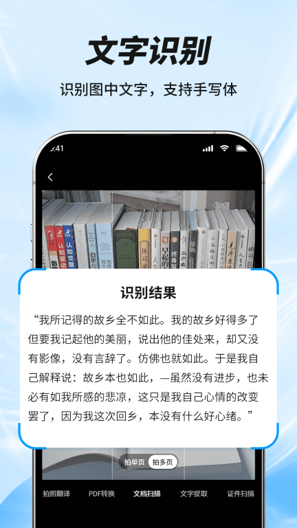 2、具备拍照识别文字的功能,也能对图中文字进行识别,同时支持手写体的识别;