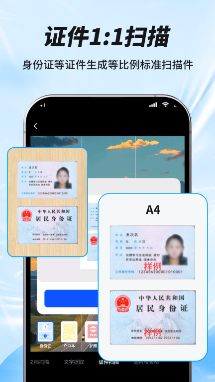 3、拍照识别功能支持识别各类证件,并且能够实现1:1扫描识别。