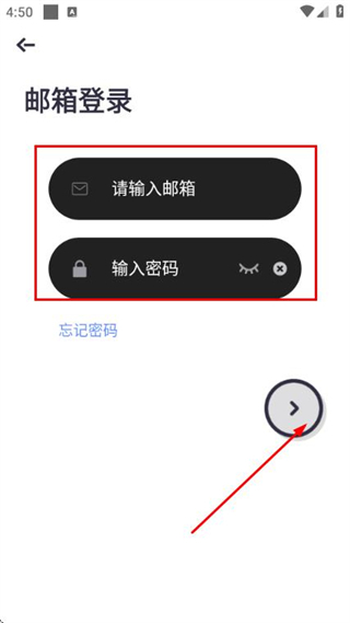 3、在登录界面输入邮箱与密码,勾选相关协议后,点击对应按钮即可完成账号登录流程。