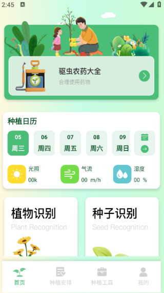 2. 在首页就能看到驱虫农药大全、植物识别、种子识别等功能;
