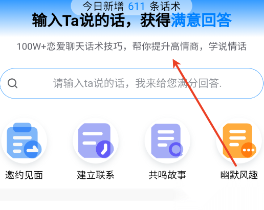 1、当用户在搜索栏中输入“约会邀请”“道歉挽回”之类的关键字时,系统会立即触发智能匹配算法并迅速启动运作。