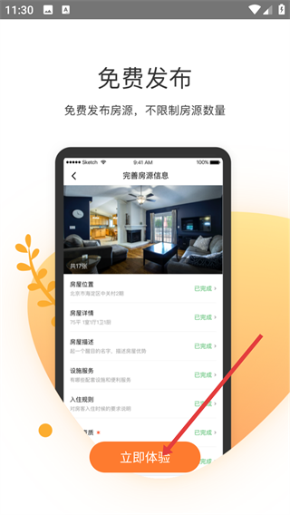 1、进入免费发布房源的界面,点击【立即体验】按钮,即可进入客多多短租助手的登录页面。