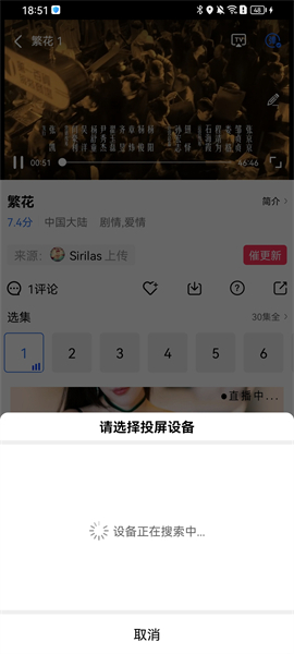 4、开启悬浮窗权限后,再次点击“TV”投屏按钮,系统便会搜索本地范围内可连接的投屏设备,点击想要连接的目标设备,就能完成投屏操作。