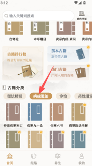 2、分类导航清晰直观,病症通治等分类板块划分明确,点击即可进入对应的古籍分类页面,操作简单便捷,有助于提升学习效率。