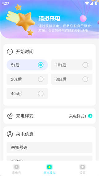 3、系统新增了模拟来电铃声功能,多种设置可轻松完成;