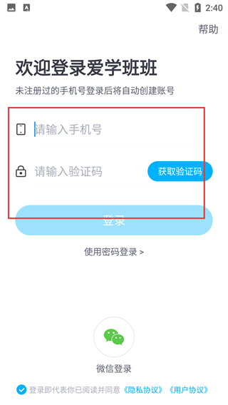 2、在登录页面,输入手机号并点击“获取验证码”按钮,输入收到的验证码即可完成登录操作;若使用的手机号尚未注册,登录后系统将自动为该手机号创建新账号。