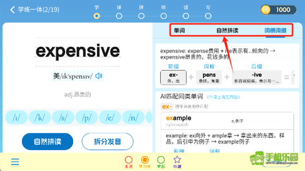 2、结合中小学同步单词开展学习,配备了十分详尽的单词解析内容。