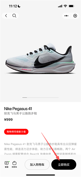 4、进入商品详情页后,点击“立即购买”按钮,接着走完该商品的购买流程。