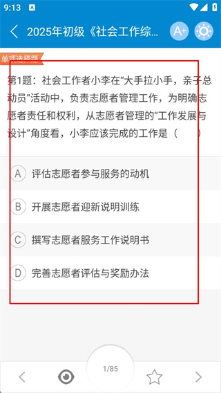 还原社会工作者考试的真实情境,设置与真题完全一致的题型、分值及考试时长,模拟实战答题的全过程,助力考生熟悉考试的整体节奏,有效提升答题速度与应试心理素质,让考生能够提前适应正式考试的氛围。
