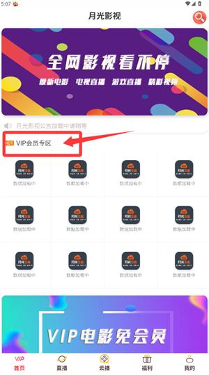 3、验证成功后回到首页,点击VIP会员专区就能观看内容了。