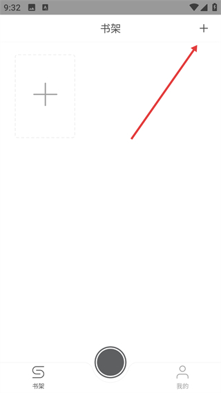 1、点击书架页面右上角的加号图标,会弹出操作选项菜单。