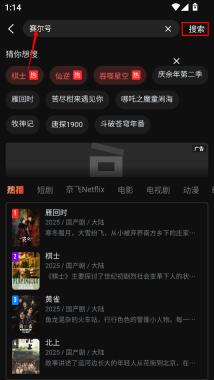 2、接着输入你要找的对应节目,然后点击右边的搜索