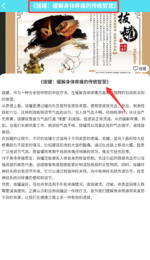 1、这款应用打破了传统养生知识零散碎片化的局限,构建起一套系统化、结构化的拔罐知识体系。
