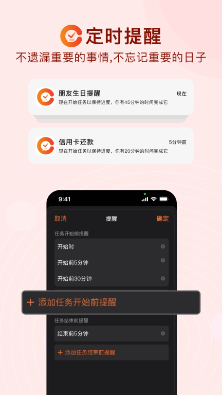 2.提供时间提醒功能,允许为任务设置一个乃至多个提醒