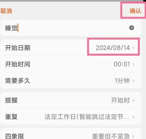 3.进入编辑页面后,选定任务的开始日期,点击【确认】按钮就可以了