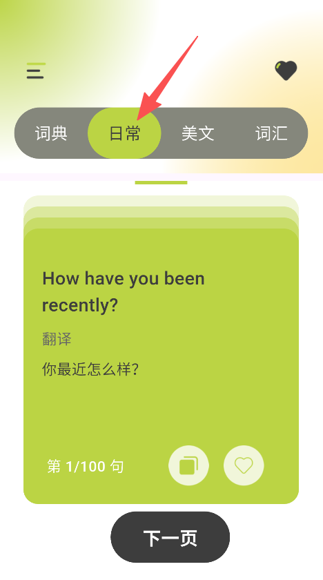 1、板块设置丰富多样,包含词典、日常、美文、词汇等类别,学习者能够依据自身需求进行选择,让学习更有针对性。