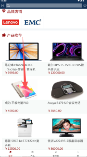 2、在主界面产品推荐板块浏览商品定位目标产品。