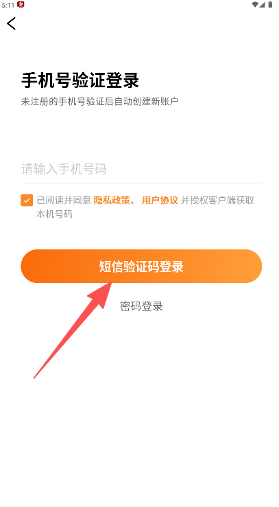 1、输入手机号码并勾选相关协议后,点击短信验证码登录按钮。