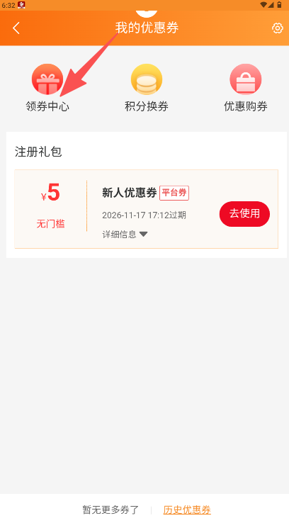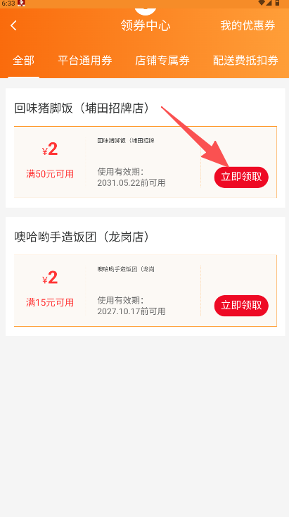 3、前往领券中心查看各类优惠券,点击“立即领取”即可获取新的优惠券。