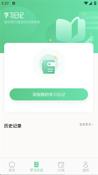 3. 点击页面下方的“学习日记”选项,就能添加个人学习日记并查看过往记录。