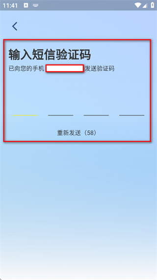 2、在验证码输入框中,输入收到的短信验证码。