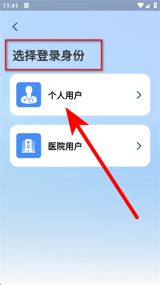 3、进入选择身份登录页面,点击选择登录身份。