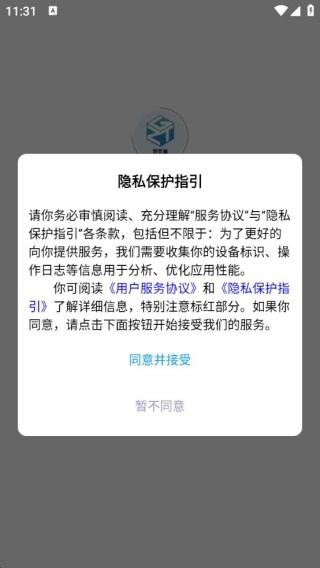 1、安装软件后进入,弹出隐私保护指引,点击同意。