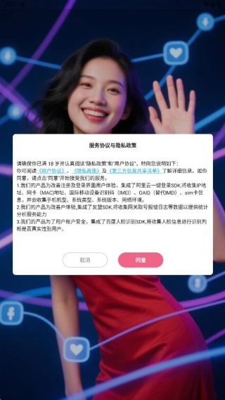 1、完成安装并进入平台后,系统会弹出服务协议与隐私权限相关提示,需要我们进行信息授权操作。