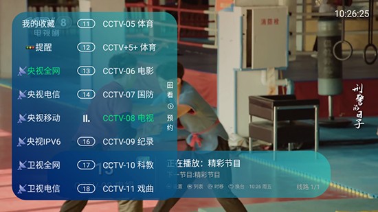 2、轻点屏幕后,频道列表会随即显示,通过上下滑动操作可浏览各个频道,点击想要观看的频道就能完成切换。