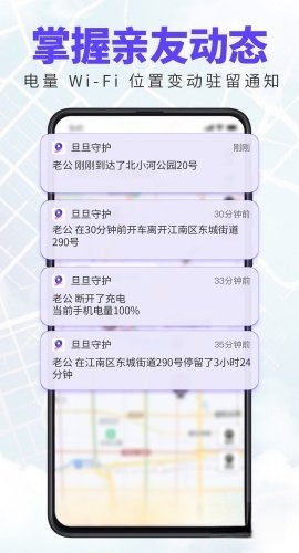 全自动记录家人的行踪、手机电量、Wi-Fi连接情况及运动状态,实时绘制移动轨迹,让您一切尽在掌握。