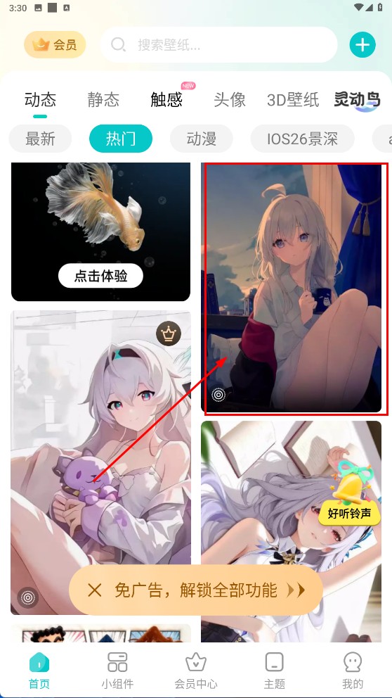1、在壁纸首页,点击你感兴趣的壁纸类型,比如动漫风格的壁纸,就能进入对应的壁纸详情页面。