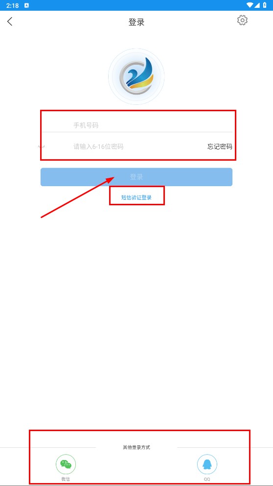 在登录界面,用户既可以输入手机号码与密码后点击【登录】功能按钮,也可以选择【短信验证登录】功能按钮,此外还能通过微信、QQ等其他方式完成登录操作。