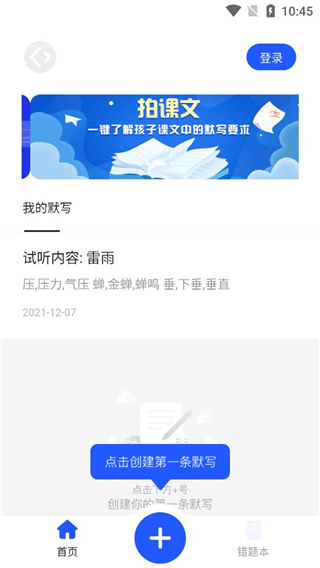 2、打开软件后,点击页面底部正中间的加号按钮,即可创建你的第一条默写内容。