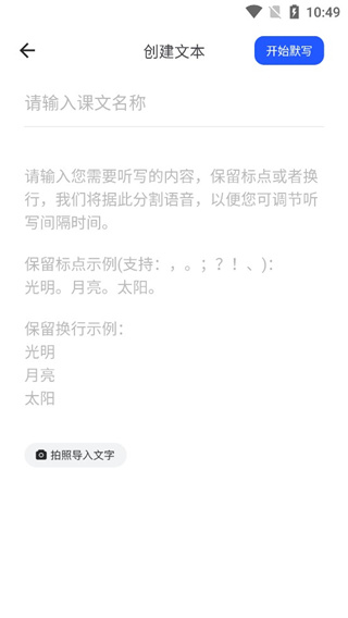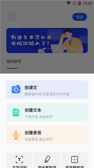 3、软件支持三种创建方式,分别是拍课文、创建文本和创建录音。