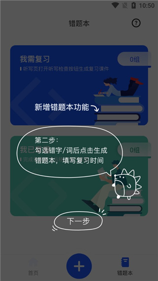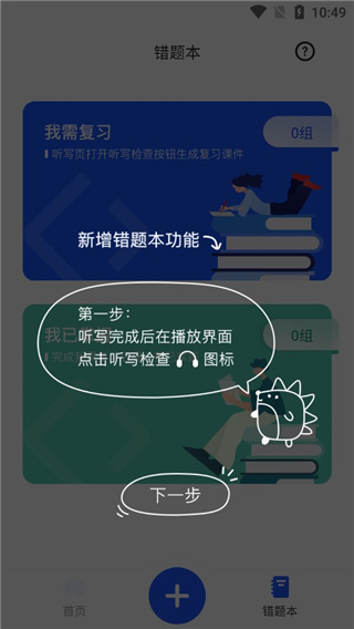 6、回到软件首页后,进入错题本板块,这是新增的功能,用户完成听写后,可在播放界面查看耳机图标。