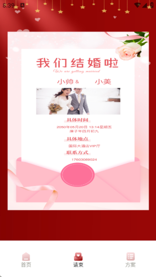 3、个性化定制请柬服务,用户能根据自身喜好对设计元素进行调整,以此彰显别具一格的婚礼风格。